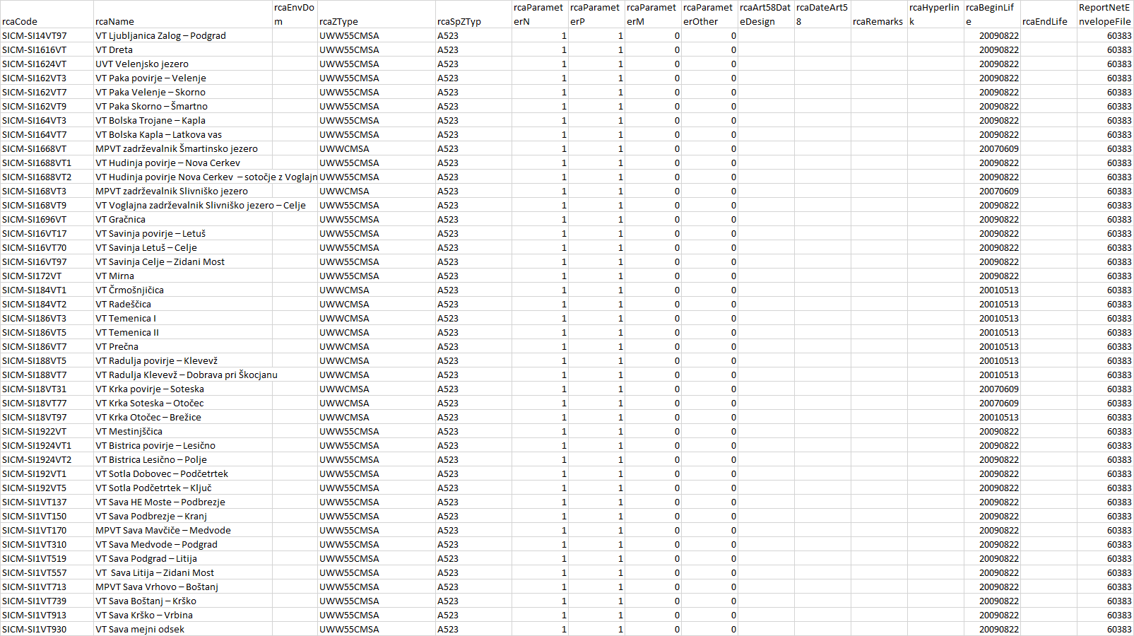 The dataset contains data reported by Member States under UWWTD reporting obligations: UWWTD implementation (Article 15) and UWWTD National Implementation Programme (Article 17). The dataset consists of tables containing information on: reported period, agglomerations, urban waste water treatment plants (UWWTPs), links agglomerations – UWWTPs, discharge points, receiving areas, and (at Member State level) sludge handling and treated waste water re-use. Relevant codelist tables (big cities, NUTS, common list of values) are included as well. Article 17 tables are distinguished by the „Art17“ prefix in the table name